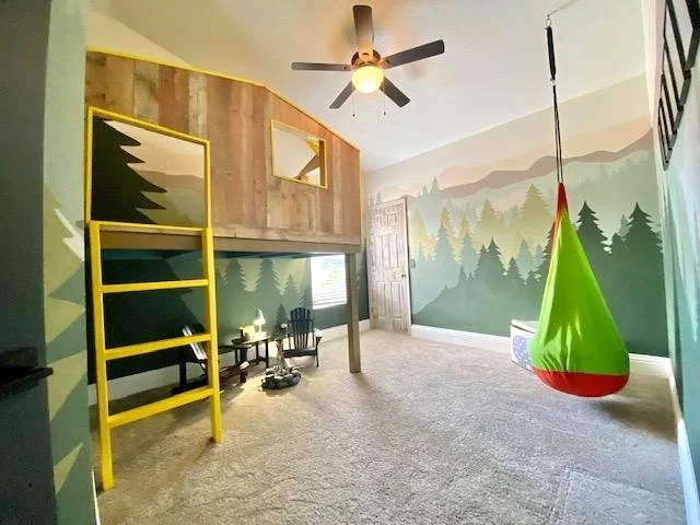 Sleek, light, and bright was the goal for this 1990s kitchen and living area remodel—and we delivered. We transformed a cramped, dark space with orangey-oak laminate cabinets into an open, airy, and inviting home. Demoing the outdated peninsula made way for a functional, modern island complete with new countertops, cabinets, and plumbing fixtures. New flooring, lighting, paint, and furnishings elevated the entire space, turning this kitchen/living combo into the best version of itself. Now it is perfect for a busy family that loves to entertain. We even spent a little time in the Playroom and the Gameroom. Now the mountains are just a ladder climb away and the theatre seating is elevated too! Stylish, practical, and thoughtfully executed on a budget, this renovation delivers a heart-of-the-home- that any homeowner would be proud of… and the ROI? Your future Realtor will thank you!